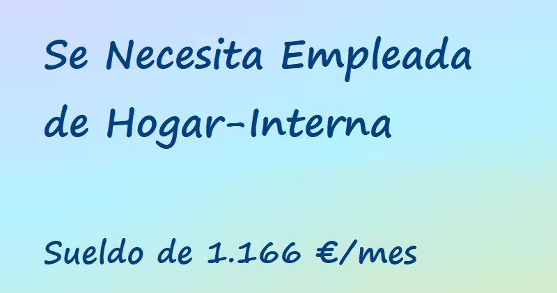 SE NECESITA EMPLEADA DEL HOGAR-INTERNA: TAREAS DEL HOGAR, LIMPIEZA Y COMIDA, COMO PERESONAL INTERNO.